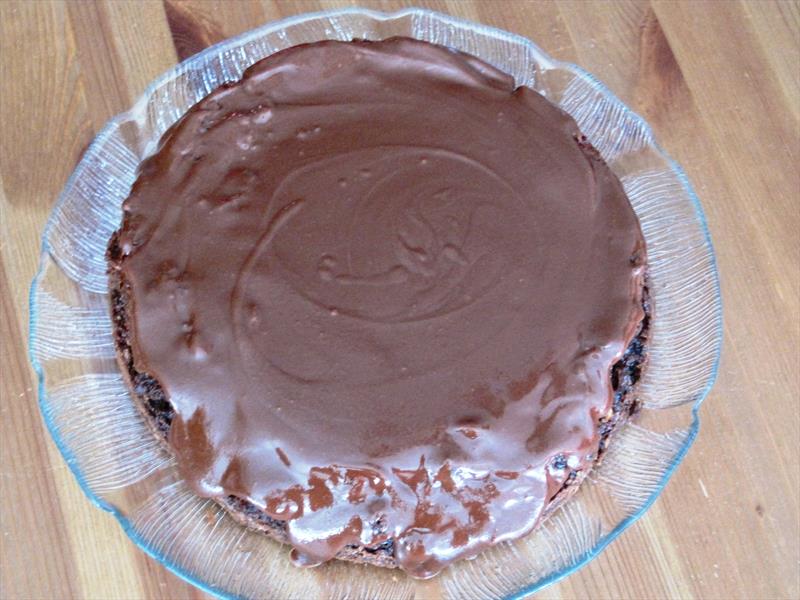 Melt the chocolate and butter together in a saucepan, then add the icing sugar and milk. Mix until smooth and pour over the cake while it’s still warm.