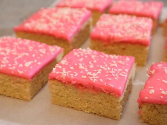This cake is known in England as Tottenham cake, and the story goes that in 1901 cakes like this with pink icing were baked and given to children to celebrate the victory of a football team in North London. Regardless of football, the cake is still popular in England today, and for good reason.