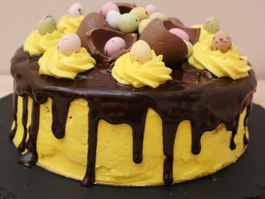 Skreytið með gulu smjörkremi og páskaeggjum.
