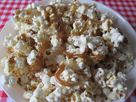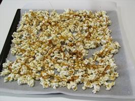 Karamellupopp er einfaldlega gert þannig að poppaður er einn poki af örbylgjupoppi, poppinu er dreift á bökunarpappír og karamellusósunni er hellt yfir og látið storkna í 2-3 mín.