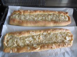 Setjið smjör og sykurinn fyrst, marsipanið þar ofaná og bjótið hliðarnar næstum inn að miðju. Skiljið þó eftir smá renning opinn í miðjunni. Dreifið möndlum og perlusykri yfir miðjuna. Bakið við 175°c í u.þ.b. 15 mínútur.